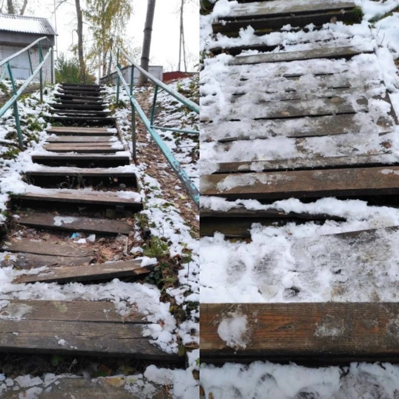 Лестница связывает улицу Парковый и проезд Санаторный. Несмотря на то что последний ремонт проводился в 2021 году, сейчас сооружение покрыто наледью и представляет опасность для горожан.
