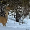 Пока заботливая мама настороженно осматривает округу, маленький косуленок с любопытством разглядывает снежный ковер.