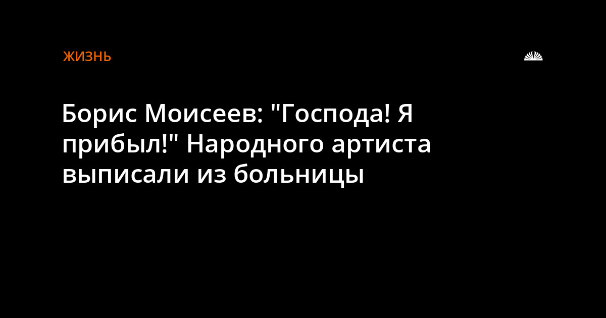Известный российский певец Борис Моисеев, который с декабря 2010 года находился на лечении в московских клиниках, выписан из больницы. Об этом он сообщил в своем микроблоге Twitter. Первая запись гласит "Господа! Я прибыл", следующие: "Да-да! Я дома! Господа, спасибо всем"!