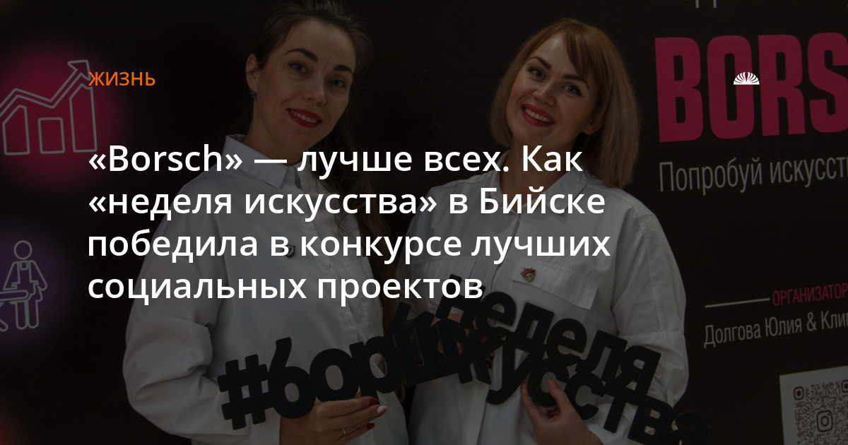 Юлия Долгова отмечает, что проект «Неделя искусства Borsch» изначально ставил перед собой несколько целей. Первая — это приобщение бийчан к культуре и искусству. Организаторы хотели показать, что в их городе очень много художников, мастеров, дизайнеров, о которых зачастую никто не знает. Вторая цель, поставленная организаторами — помочь с продвижением творческим людям города Бийска.