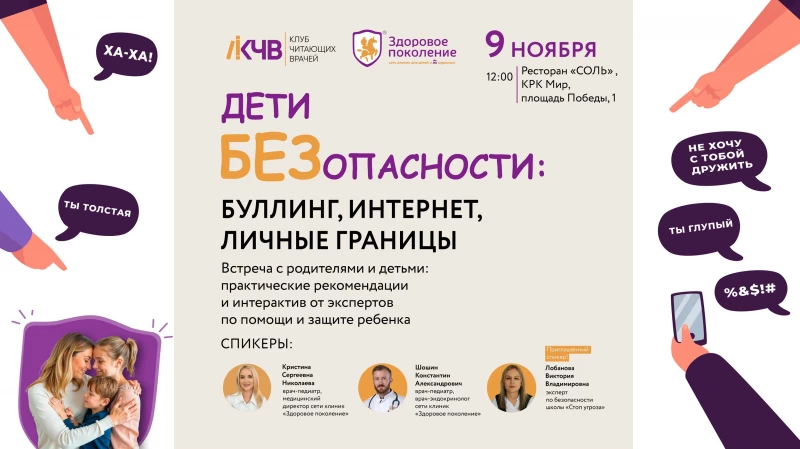На встрече гости узнают, как распознать тревожные сигналы у ребенка, что делать, если подросток стал жертвой буллинга и как научить детей отстаивать свои границы. В программе — реальные истории, практические упражнения и разбор последствий без запугиваний, только на основе опыта специалистов.