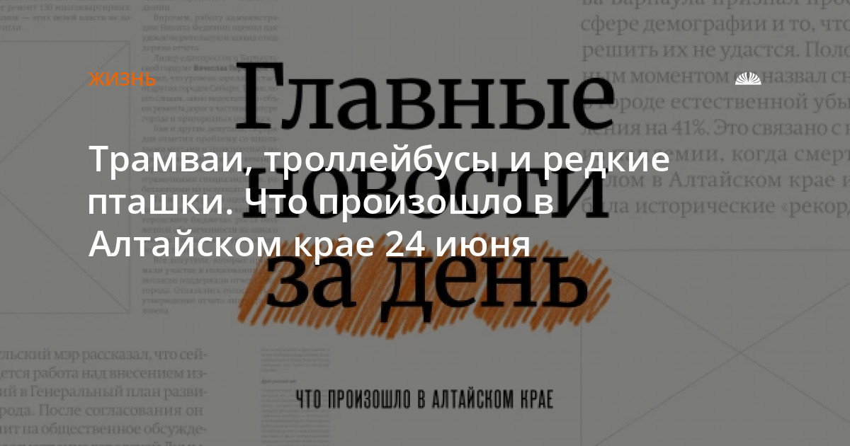 - На Барнаул обрушился мощный ливень и шторм. За одну ночь выпало 8,3 мм осадков при месячной норме 54 мм. Часть пригородных поселков осталась без электричества.