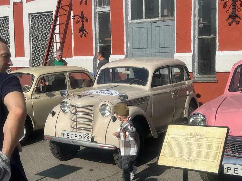 Выставка ретро-автомобилей и мотоциклов привлекает посетителей с раннего утра. Многие горожане впервые увидели военную технику. Люди активно делают фото возле машин, особенно дети любят маленький синий автомобильчик, похожий на машину дяди Федора из мультфильма «Простоквашино».