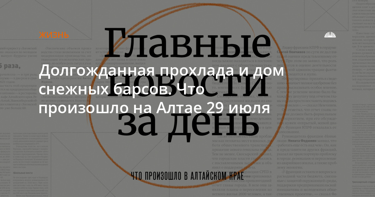 - Жаркие дни в Алтайском крае сменятся прохладой и дождями. С 1 по 3 августа пройдут ливни, а температура воздуха постепенно спадет до +24 градусов.