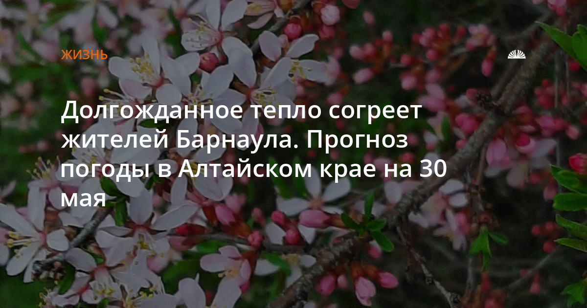 В Барнауле ожидается погода без существенных осадков, воздух прогреется до +18...+20 градусов. Скорость ветра составит 2–7 м/с, направление — северо-восточное.