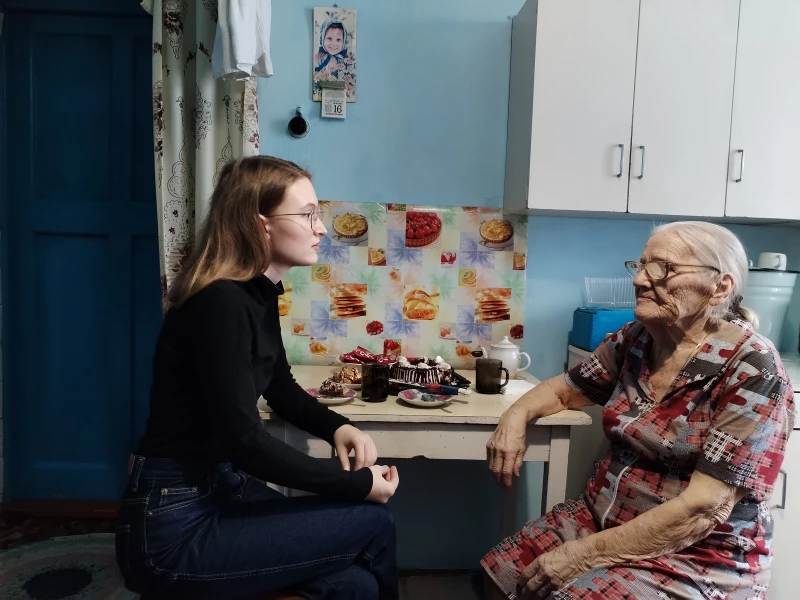 Нину Тимофеевну мы застаем за хлопотами у большой теплой печки. Дрова в ней уже разгорелись и весело потрескивают, а хозяйка дома спешно подметает пол от осыпавшихся щепок, ведь скоро придут гости. На столе уже стоит горячий чайник и торт. Нина Тимофеевна усаживает нас за стол и начинает свой рассказ.