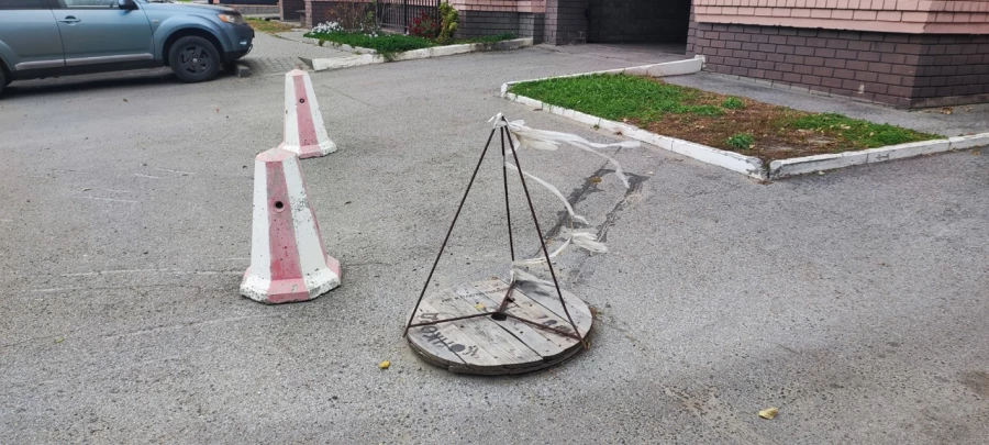 5 июня, в тот день, когда сломалась крышка люка, зияющую дыру ветками заложили жильцы. После консьерж поставила сверху самодельную конструкцию, чтобы хоть как-то обозначить провал. За эти месяцы новую крышку так и не установили. И жильцы опасаются, что в дыру может попасть колеса их автомобилей или мусоровоза, который протискивается буквально в сантиметрах от колодца.