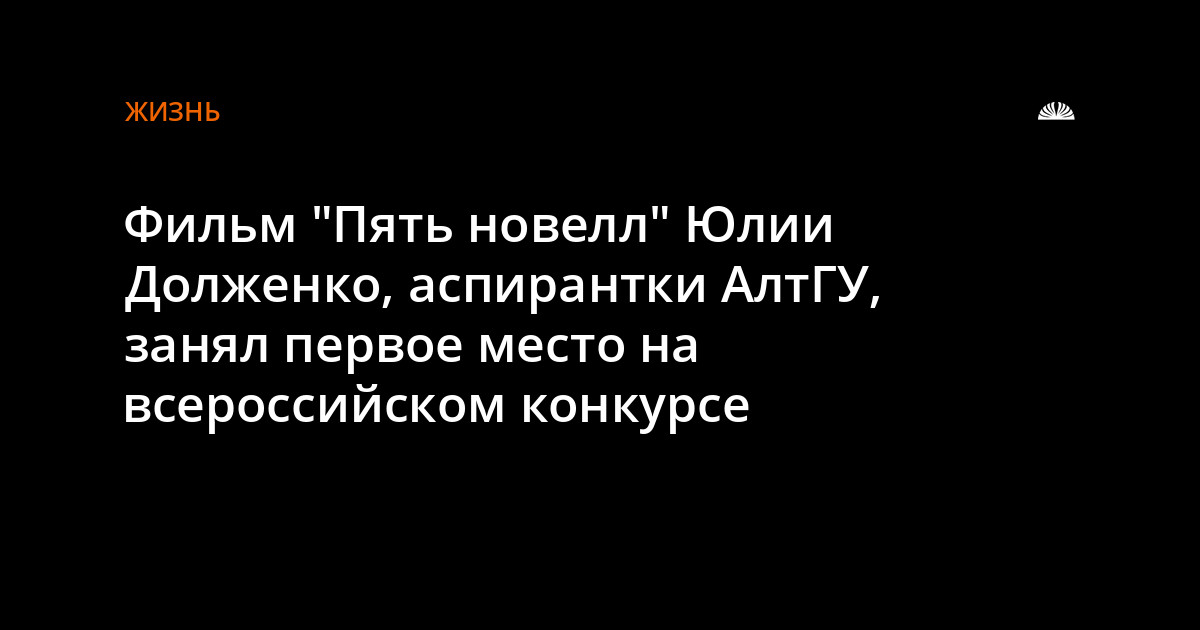 Фильм "Пять новелл" Юлии Долженко, аспирантки АлтГУ, занял первое место на всероссийском конкурсе видеопоэзии "Очевидно", завершившемся на прошлой неделе в Новосибирске.