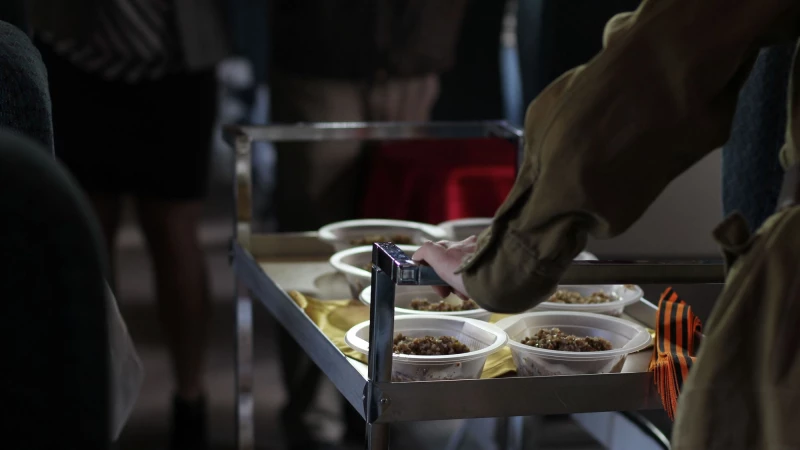 Во время путешествия в Бийск пассажиров поезда накормили кашей, приготовленной по рецептам военного времени, раздали им георгиевские ленточки и показывали фильмы про войну.