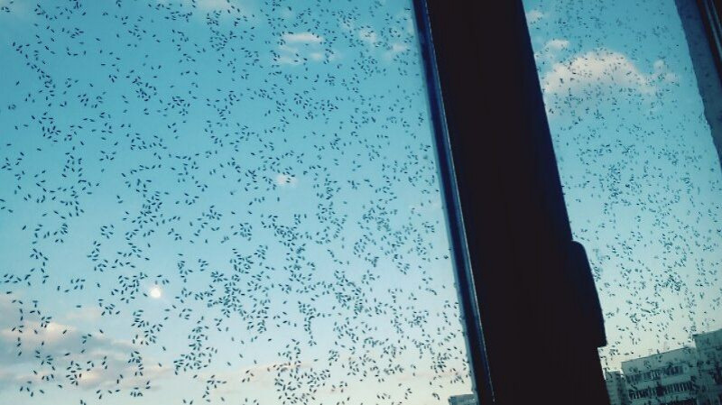 Странные насекомые за окном! Окна облепили какие то непонятные букашки. Что это, кто знает?