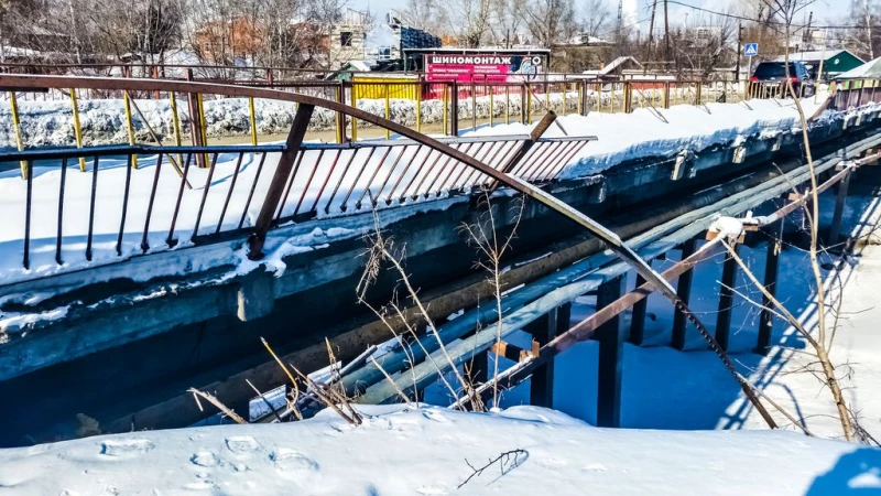Напомним, что недалеко от разваливающегося объекта застройщик "Аквамарина" возводит мост через Барнаулку. Пешеходный мост будет соединять правый и левый берега реки - жилой комплекс и офисный центр.