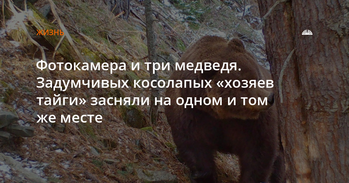 Фотоловушка зафиксировала моменты, когда три разных медведя подошли к одному и тому же дереву, обнюхивая его.