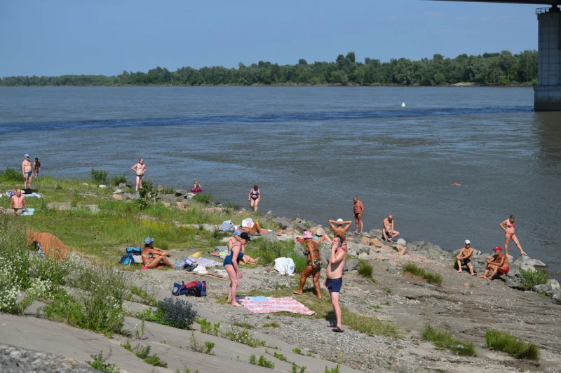 Ранее барнаульцы вышли «пожариться» под палящим солнцем и искупаться рядом с Новым мостом — фоторепортаж.