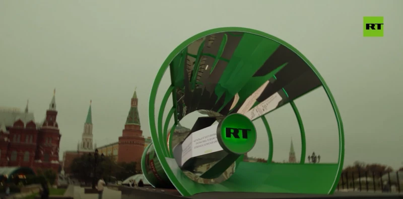RT установил огромный рупор на Манежной площади в Москве.