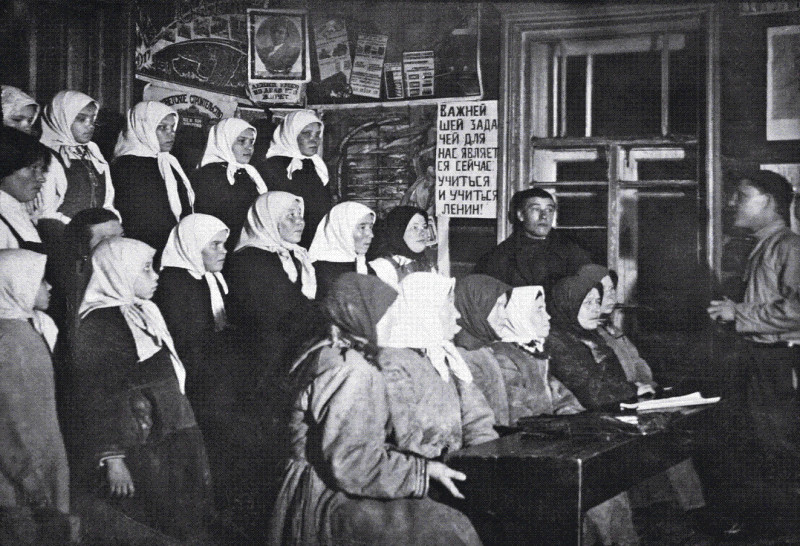 В конце декабря 1919 года Совет народных комиссаров принял декрет «О ликвидации безграмотности среди населения РСФСР». Согласно ему, все население Советской России в возрасте от 8 до 50 лет, не умевшее читать или писать, обязали учиться грамоте на родном или на русском языке.