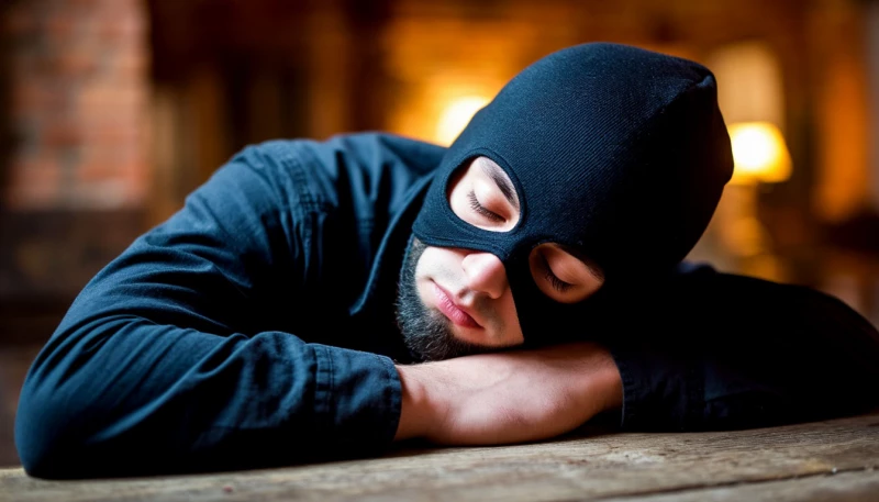 Имея опыт предыдущих правонарушений, вор проник в квартиру через окно, зная, что хозяева отсутствуют. Он собрал в пакеты телевизор и бензопилу, но, утомлённый, уснул.