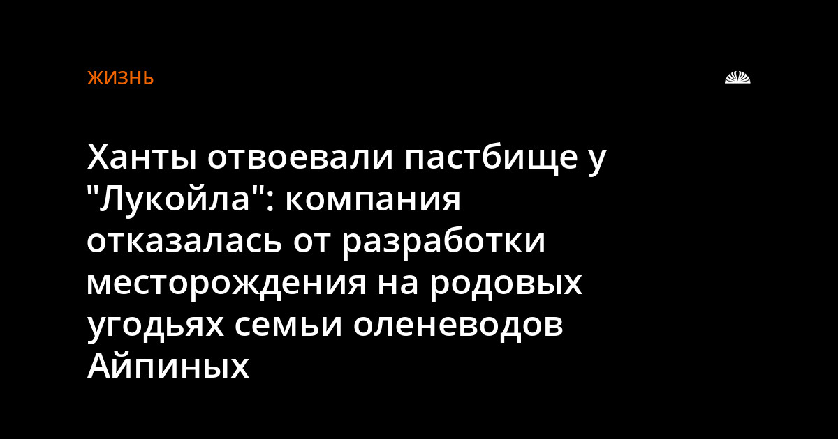 Ханты отвоевали пастбище у "Лукойла": компания отказалась от разработки месторождения на родовых угодьях семьи оленеводов Айпиных