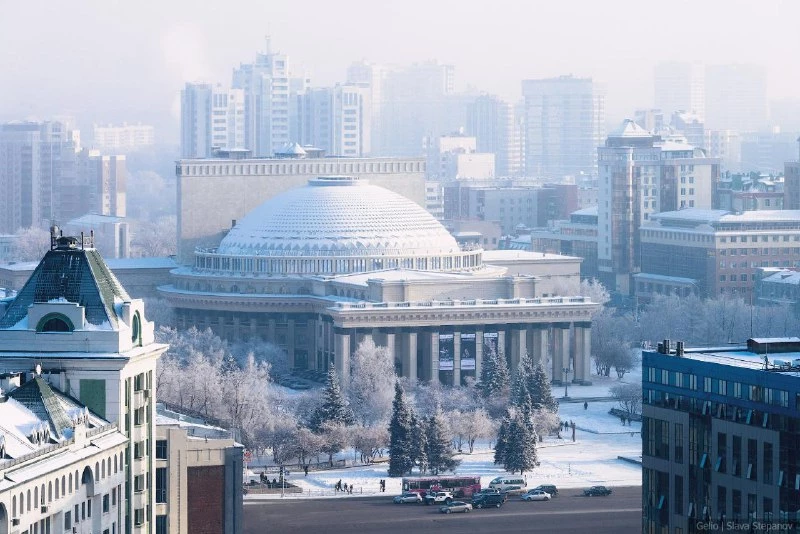 В главном городе Сибири тоже выпадает предновогодний снег. Настоящий русский холод будто «заморозил» большой город и сделал из него сказочное царство вечной зимы.