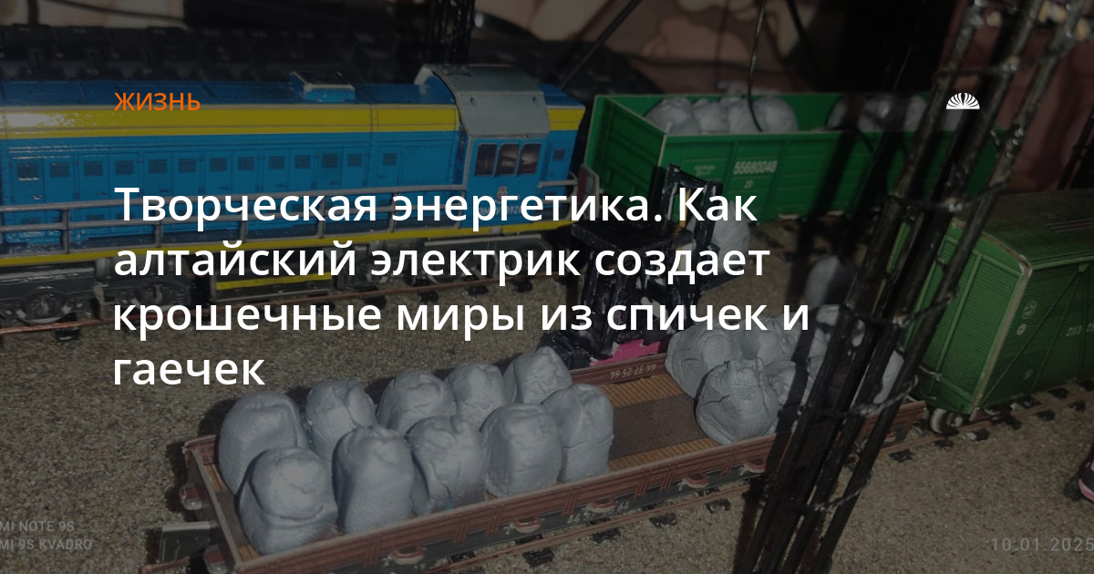 Если присмотреться к некоторым работам повнимательнее, то можно увидеть множество проводков, болтиков и лампочек. Все это подручные материалы, с которыми Юрий работает каждый день на алтайском заводе «Кучкусульфат». Здесь он трудится уже 25 лет электромонтером цеха №6.