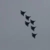 Самыми яркими моментами, вызывающими овации, стали отстрелы тепловых ловушек. При этом группа провела грациозный роспуск ведомых, нарисовав в небе восхитительную картину из искр, дыма и, конечно, самолетов.
