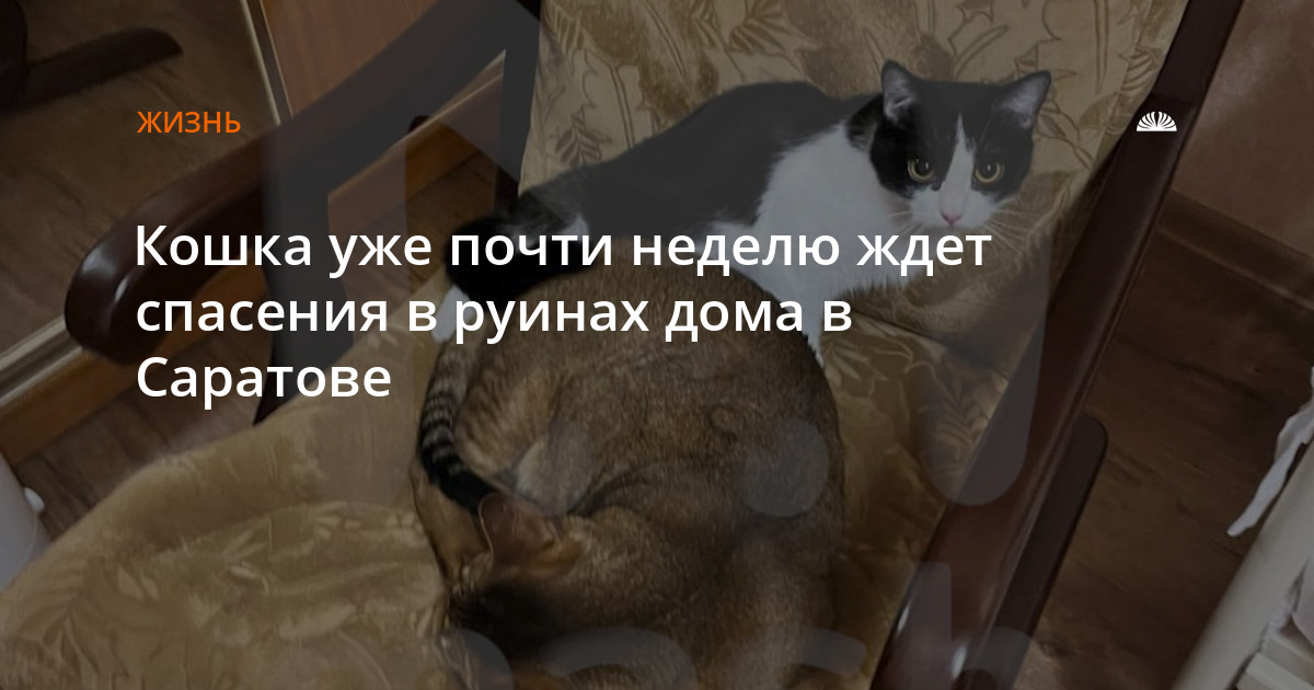Кошка уже почти неделю ждет спасения в руинах дома в Саратове
