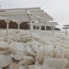 Ветер со скоростью 12 метров в секунду и необычный для этого региона холод вызвали погонные явления, в результате которых льдины выбрасывало на берег.