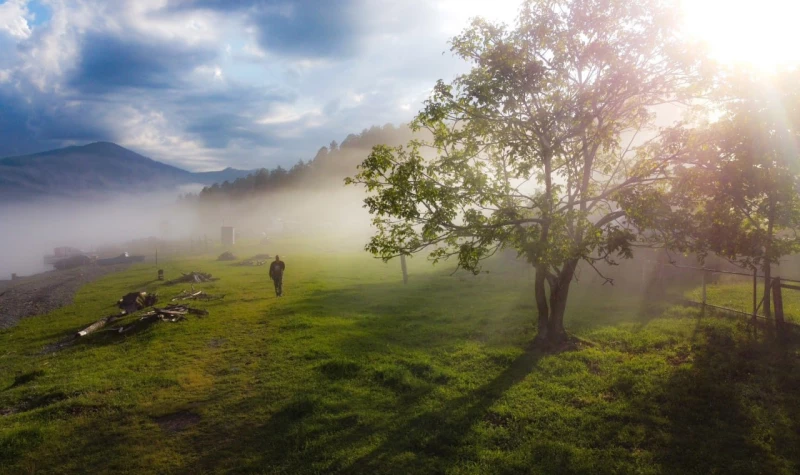 Ранее летним утром сказочный туман окутывал Алтайский заповедник волшебством.