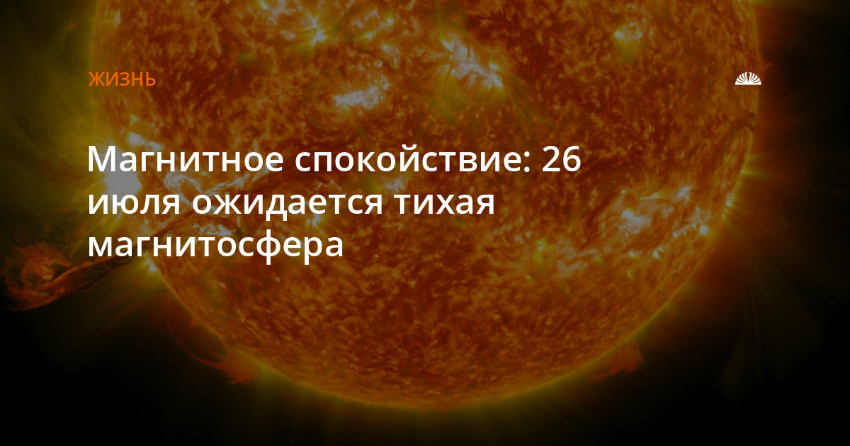 26 июля 2025 года ожидается преимущественно спокойная геомагнитная обстановка.