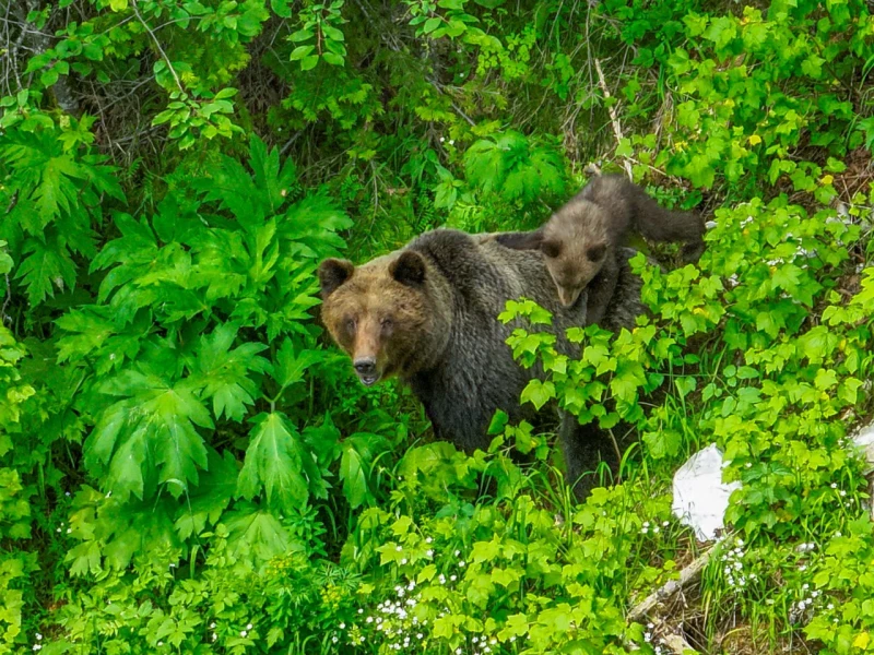 Для медвежонка мама — любящая и всепрощающая, на которой можно играть и кататься. В то же время, для посторонних медведица — большой и опасный зверь, готовый защищать своего детеныша.