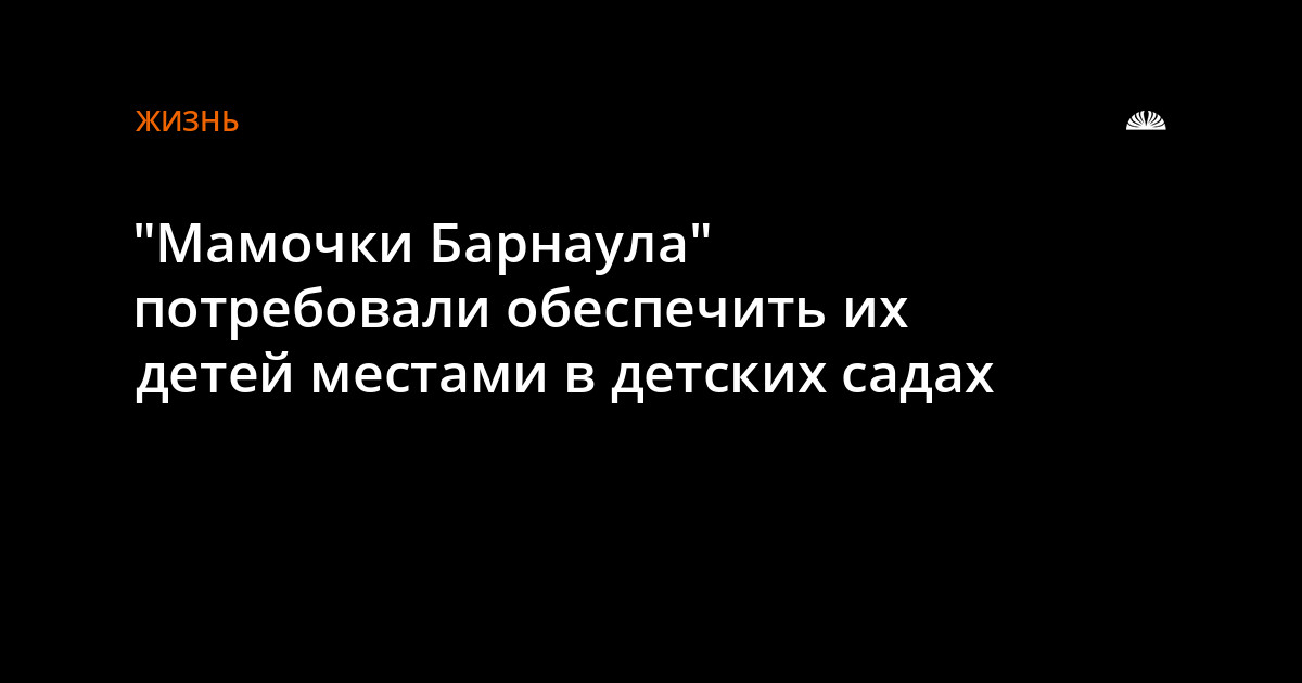 Мамочки выдвинули главное требование - создать в течение двух лет полноценные места в детских садах города для всех нуждающихся детей и на это время обеспечить матерям выплату денежной компенсации. Об этом сообщает пресс-служба регионального отделения партии "Справедливая Россия" в Алтайском крае.