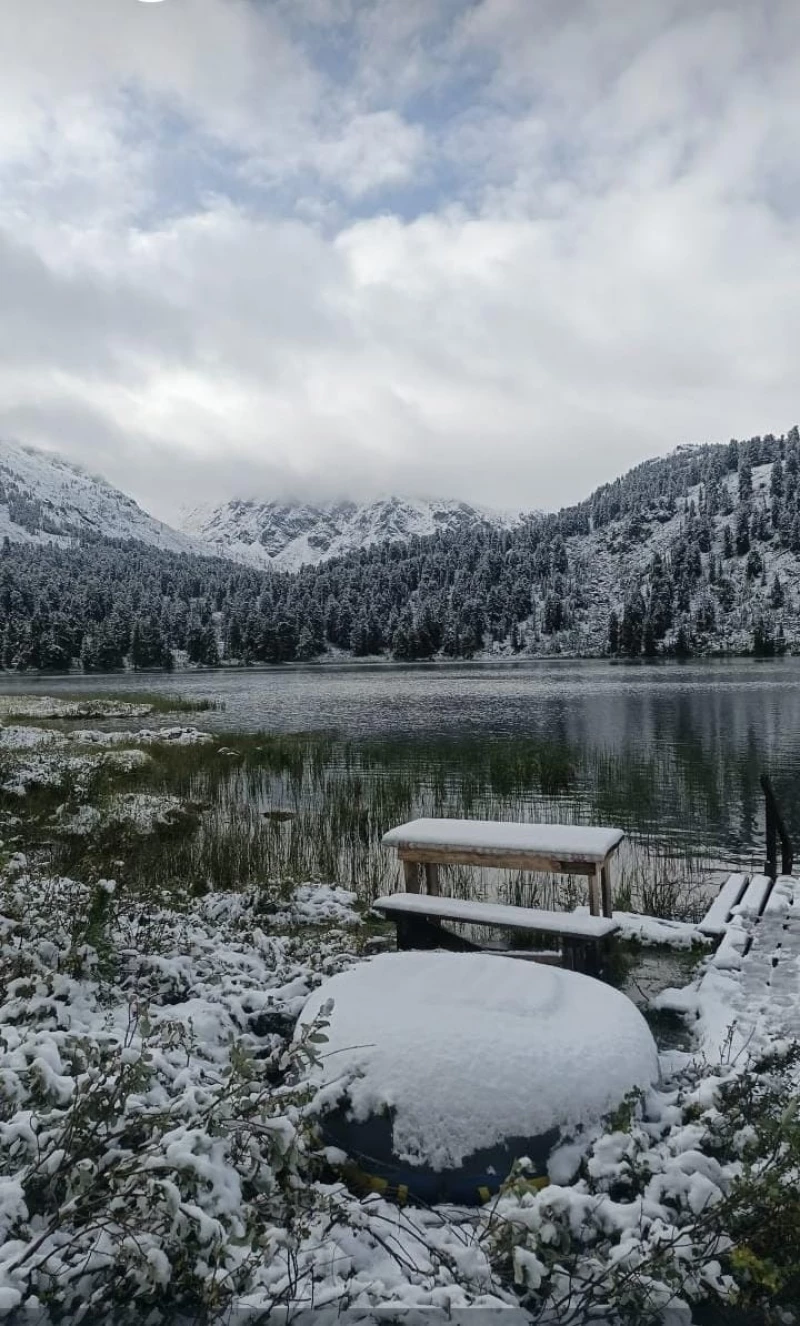 Обычно на Каракольских озерах снег появляется в конце сентября и лежит до середины мая.