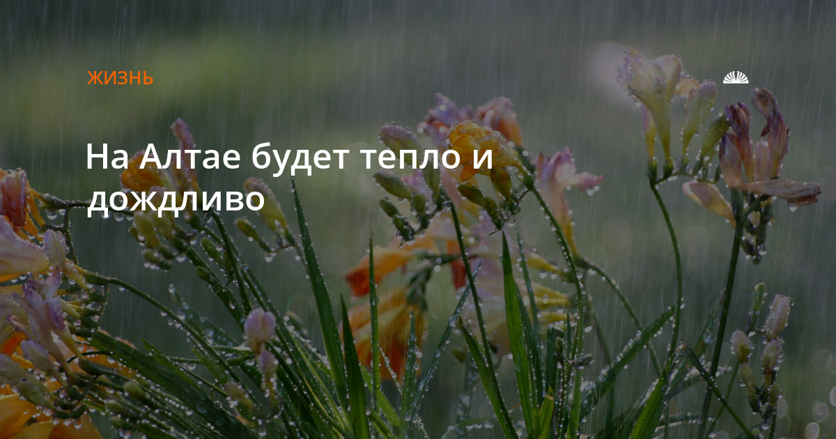 В Алтайском крае во второй половине дня прогнозируется дождь, грозы. В утренние часы возможен туман. Температура воздуха в течение дня поднимется до +20...+24.
