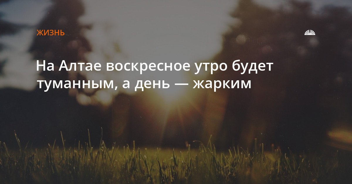 27 августа, в последнее воскресенье лета, на Алтае будет жарко: воздух прогреется до +28 °С. В некоторых районах края утром возможен туман.