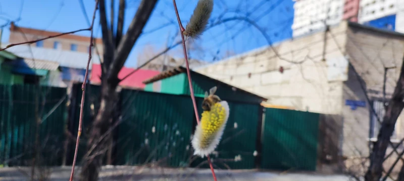 Вот и в Вербную неделю пушистики на фоне голубого неба стали настоящей находкой для проснувшихся пчел. Да они буквально атаковали деревце! Собирают пыльцу и отпугивают бабочек.