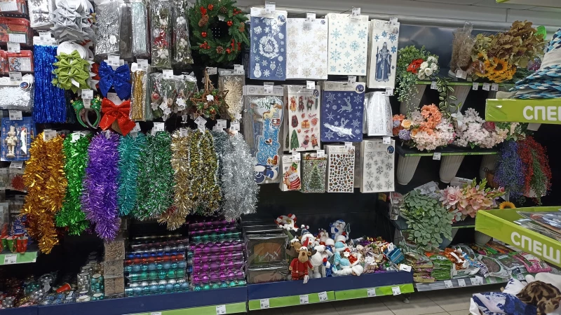 Торговые точки активно завлекают покупателей елочными игрушками, блестящей мишурой и всевозможными новогодними аксессуарами. Продавцы не упускают возможности заработать на предпраздничном настроении горожан.