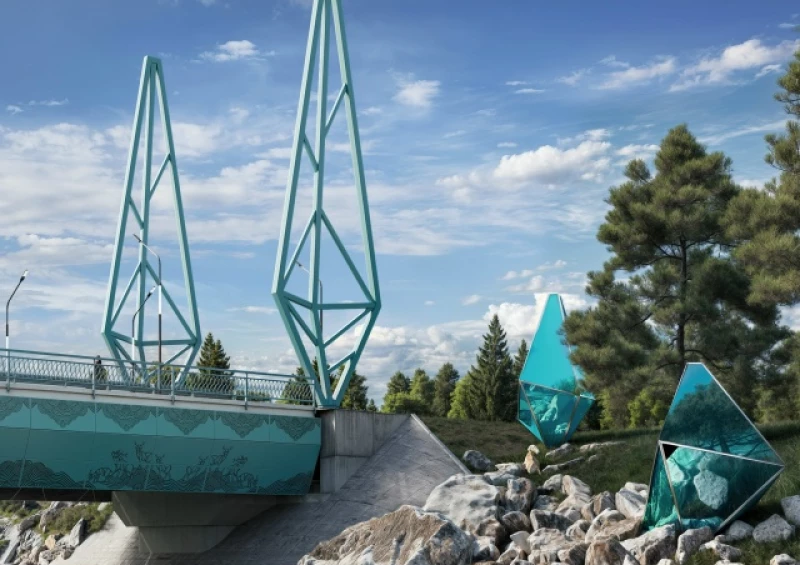 Как сообщает Архитектурное бюро Василия Рыбакова, специалисты добавят в его дизайн бирюзовые оттенки, силуэты маралов и декоративные элементы, которые будут напоминать драгоценные камни. Построят его в особой экономической зоне «Бирюзовая Катунь» вместо металлодеревянного моста. Тот по нагрузке не соответствует предъявляемым требованиям.
