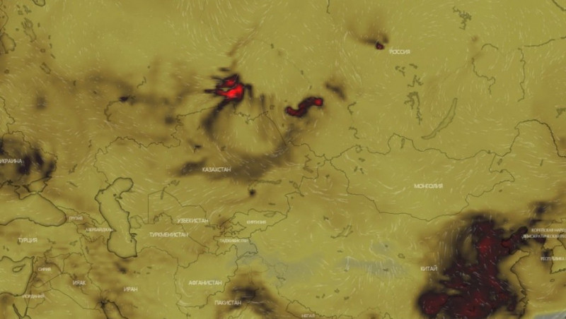 Подобная картина наблюдалась только на северо-востоке Омской области, где продолжаются пожары, и юго-востоке Китая.