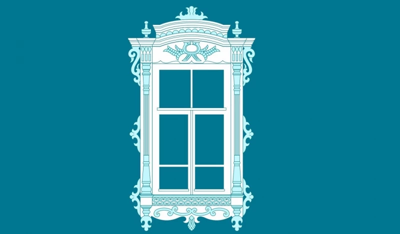 Художественными кисточками остается покрасить голубым цветом небольшие детали на наличниках.