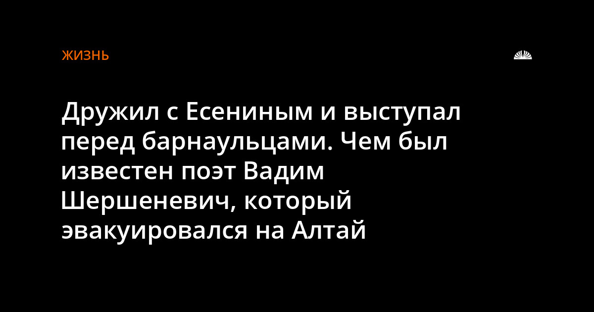 Осенью 1941 года Вадим Шершеневич эвакуировался на Алтай. Он участвовал в литературных концертах на оборонных заводах и в военных госпиталях Барнаула, писал тексты для агитационных плакатов.