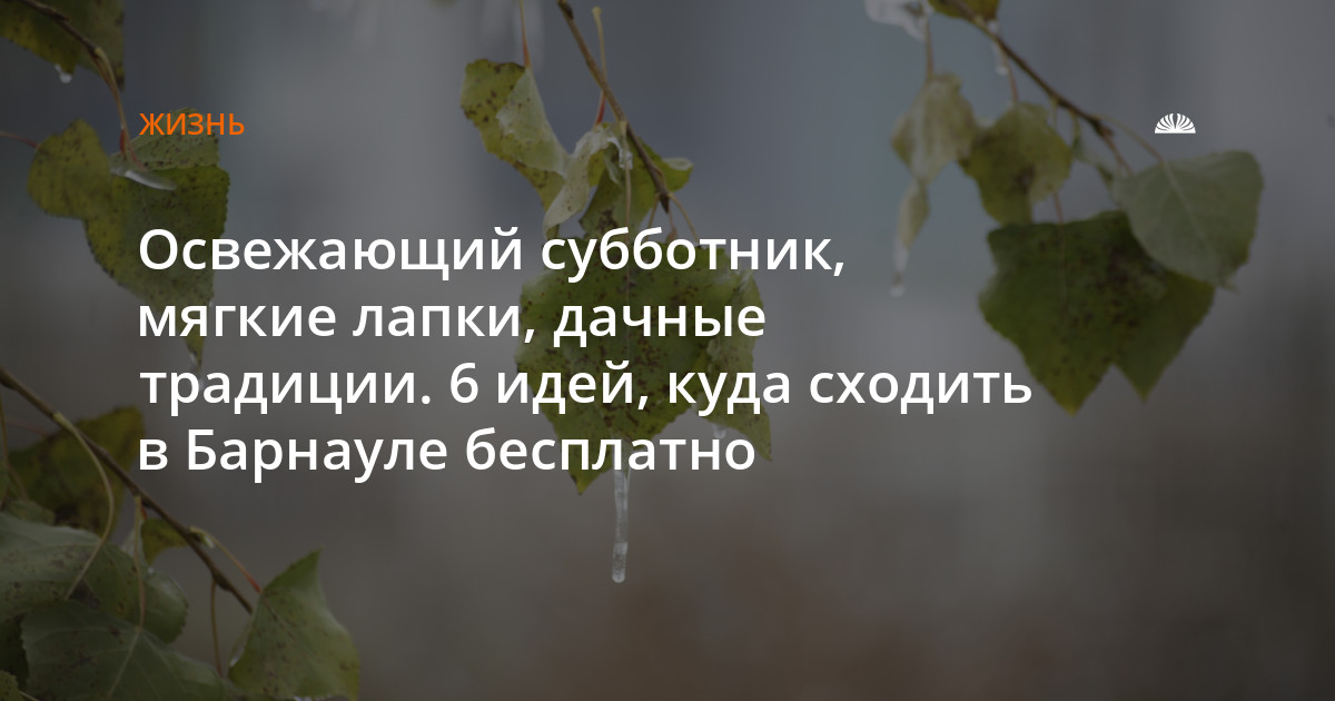 - Проект «Чистый край Алтай» проведет 11 октября субботник на озере «Сердце города». Встреча на остановке «Столовая Бия» в 12:00, 12+