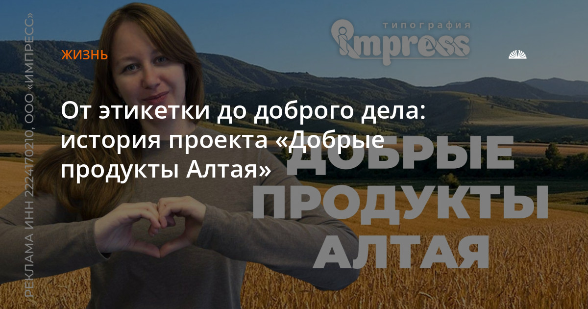 Так сложилось, что мы уже объединяем известные торговые марки производителей Алтайского края — печатаем для них этикетку — являемся некой платформой, на которой можем собрать много производственных компаний. И когда к нам пришла идея сделать доброе дело, то осталось только предложить поучаствовать в нем тем, кто каждый день производит продукты для нас с вами. Так и родились «Добрые продукты Алтая». Бизнес объединился, чтобы помочь тем, кто нуждается в помощи, — говорит директор типографии «Импресс» Оксана Гладышева.