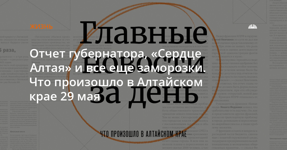 - Виктор Томенко выступил перед депутатами АКЗС с отчетом о работе правительства в 2024 году. В частности, губернатор отметил увеличение темпов роста экономики до 4,2%, рост индекса промышленности до 105,8% и повышение сельскохозяйственного производства на 14,9%. Большинство парламентариев приняли отчет. КПРФ предпочла воздержаться.