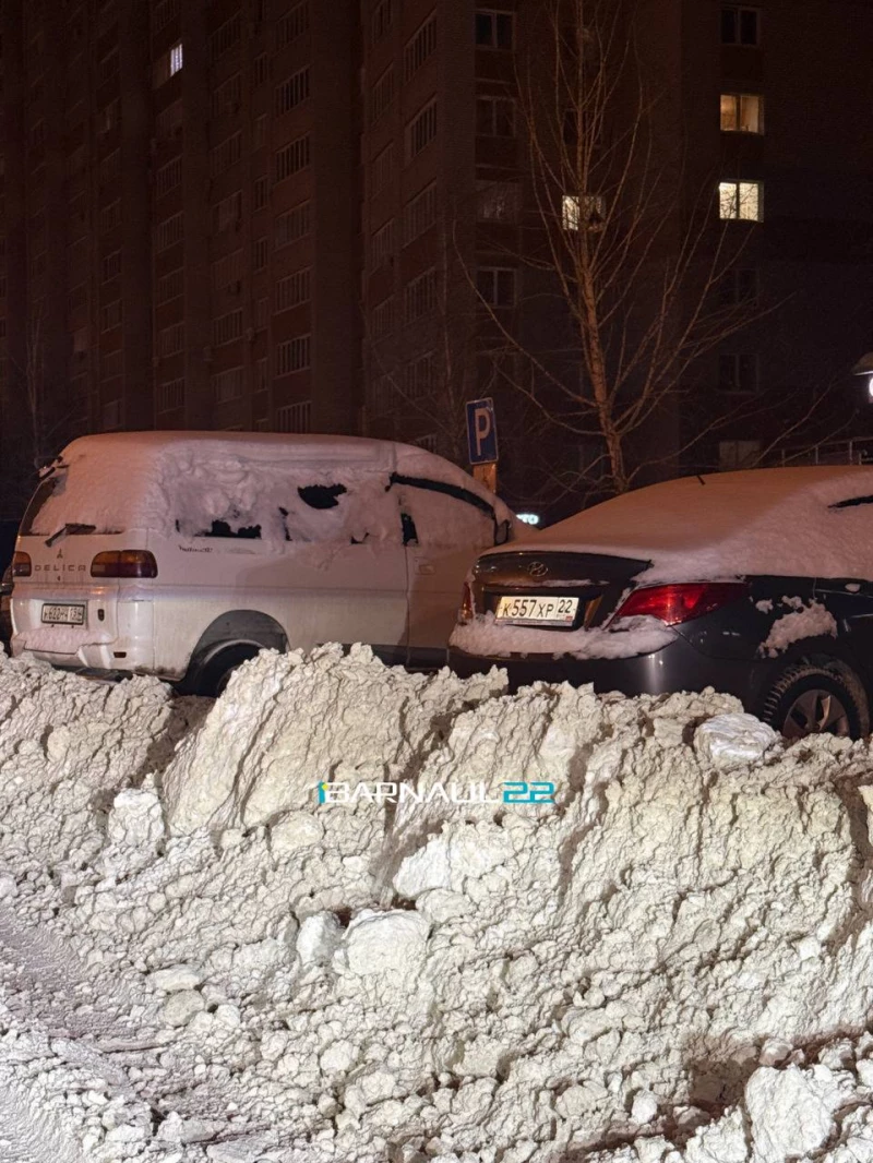 По словам горожан, после уборки снега с ул. Попова машины на соседних парковках оказались закрыты снеговыми завалами. Об этом сообщает телеграм-канал «Барнаул 22».