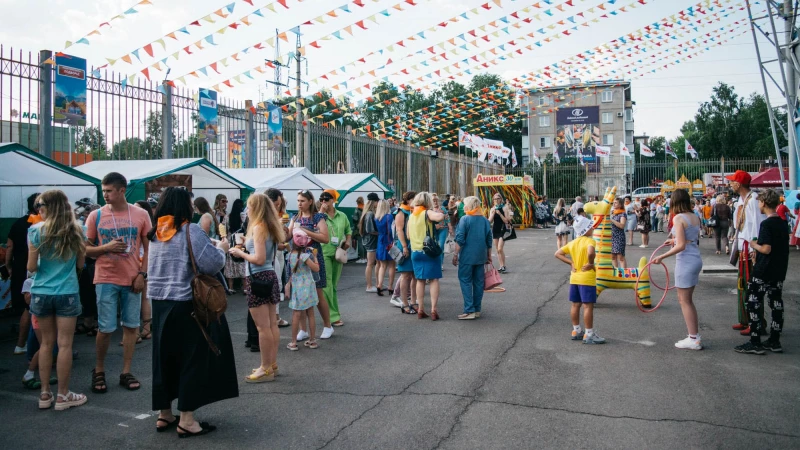 Начался праздник на стадионе «Юбилейный» с ярмарки — настоящего Торгового двора. «Аникс» угощал гостей своей знаменитой выпечкой и алтайским чаем, а местные производители проводили дегустации своей продукции: сыр, вафли, хот-доги, пельмени, йогурт, мороженое, различные напитки… и даже копчёный осётр!