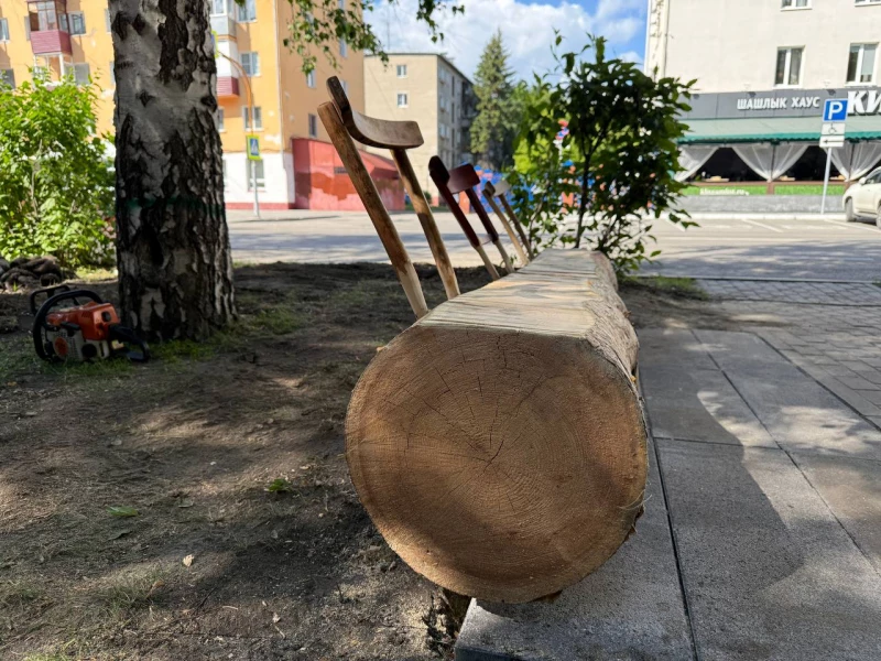 Комитет по благоустройству доставил бревно. Завод «Алом» предоставил плитку бесплатно. Стулья нашли на Авито.