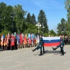 Под звуки гимна России был поднят государственный флаг, после чего участники возложили цветы к подножию стелы «Город трудовой доблести».