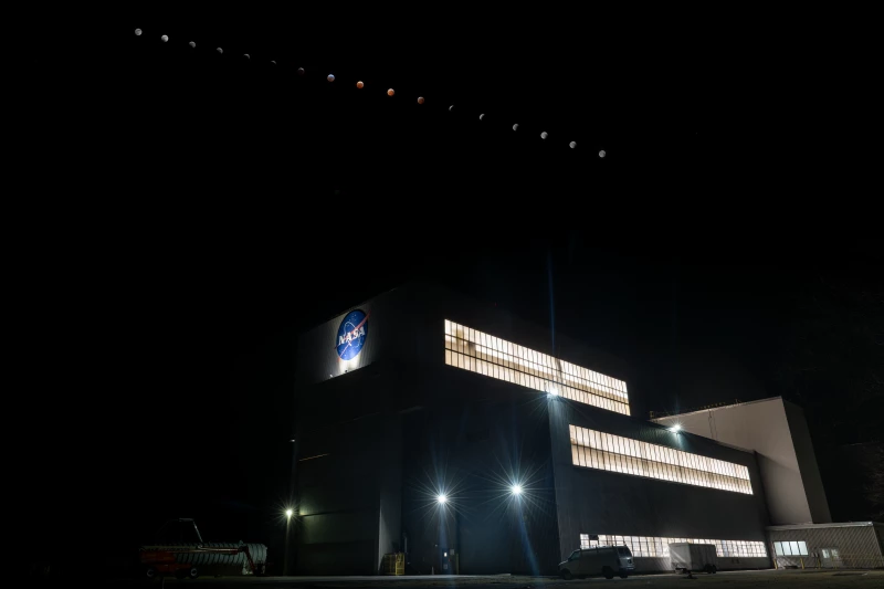 Ранее фотограф NASA в одном снимке показал все фазы полного лунного затмения. Похоже на «лунный поезд» в темном ночном небе.
