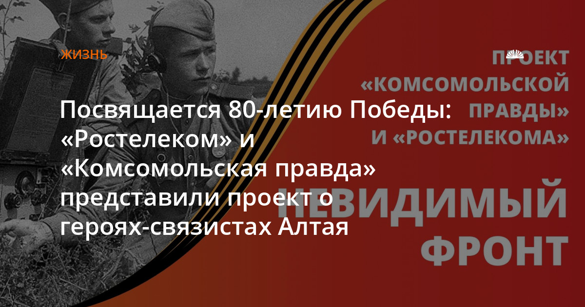 Материалы опубликованы на сайте «Комсомольская правда – Барнаул». В шести тематических разделах рассказывается о том, как связисты обеспечивали бесперебойную связь на фронте, о подвигах солдат-телефонистов и радистов. Здесь же размещена информация об алтайских воинах, удостоенных звания Героя Советского Союза, и о ветеранах, работавших в послевоенные годы в отрасли связи региона.