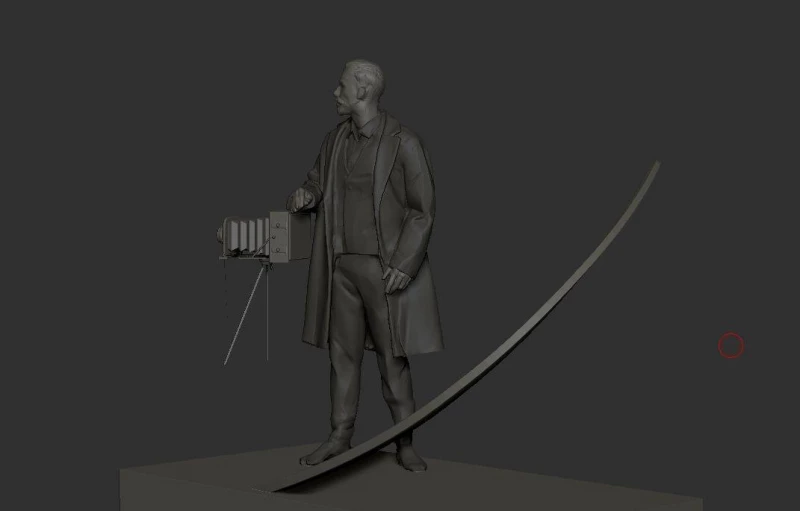Сейчас команда работает над созданием 3D-модели будущего памятника. Уже готов первый эскиз, где художники выстроили композицию памятника: мастер с фотоаппаратом и барельефом, где изобразят его ключевые работы. Далее «набросок» обогатят деталями.
