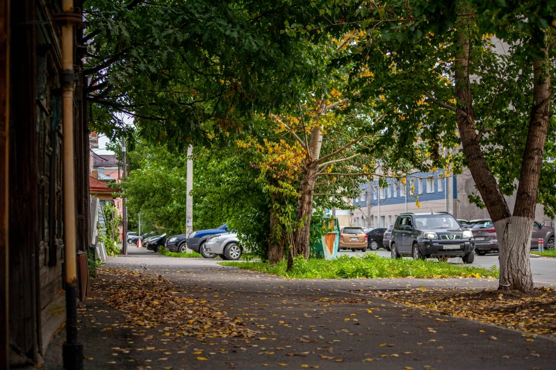 На проспекте Ленина картина еще необычнее: одни деревья стоят с красивой «шевелюрой», которая местами пожелтела, а другие полностью «облысели»: то ли старые уже, то ли погодные причуды так сказались. Люди тоже разделились на два лагеря: мерзляков в куртках, кофтах и пиджаках, и горячих — в летних платьях, шортах и футболках.